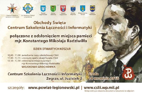 14 września br. na terenie Centrum Szkolenia Łączności i Informatyki w Zegrzu odbędzie się odsłonięcie miejsca upamiętniającego majora Konstantego Mikołaja Radziwiłła ps. Korab.
