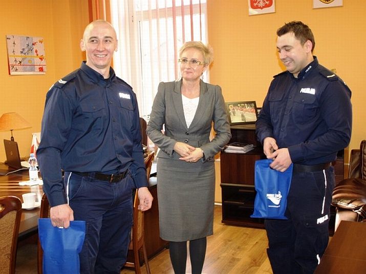 Starosta żagański Anna Michalczuk, doceniając profesjonalizm i zaangażowanie funkcjonariuszy zorganizowała spotkanie, w czasie którego w obecności I zastępcy komendanta powiatowego policji w Żaganiu mł. insp. Daniela Gotthardt oraz komendanta Komisariatu Policji w Iłowej podinsp. Ryszarda Hryniewieckiego, złożyła policjantom, st. sierż. Rafałowi Kimla oraz sierż. Łukaszowi Osińskiemu podziękowania i wręczyła upominki. (jkd)