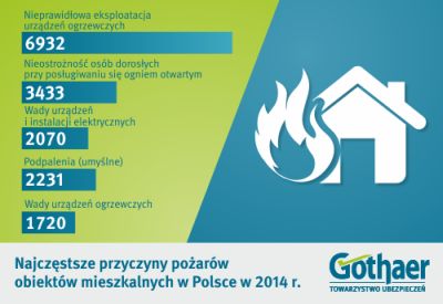 Z danych Komendy Głównej Państwowej Straży Pożarnej wynika, że w ubiegłym roku, w związku z pożarami obiektów mieszkalnych, strażacy interweniowali w całej Polsce właściwie tyle samo razy ile w poprzedzającym go 2013 r. (odpowiednio 27 353 i 27 491 interwencji). - Zanotowana przez strażaków porównywalna liczba pożarów ma przełożenie także na liczbę szkód, które są zgłaszane do ubezpieczycieli. Z uwagi na dynamiczny rozwój sprzedaży ubezpieczeń budynków i lokali mieszkalnych w Gothaer, w roku 2014 odnotowaliśmy prawie dwukrotny wzrost szkód spowodowanych przez pożary w stosunku do roku 2013 – mówi Anna Materny, dyrektor Biura Ubezpieczeń Detalicznych w Gothaer TU S.A.