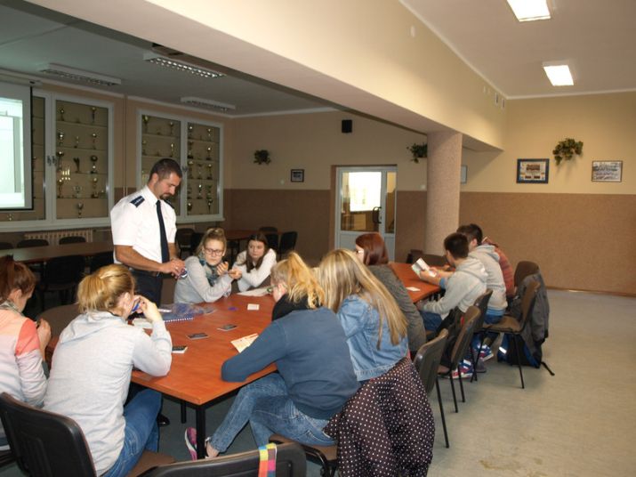 St. asp. Przemysław Stankiewicz, podczas spotkania, omówił zjawiska przemocy w rodzinie, jej rodzaje i skutki oraz możliwości zapobiegania. Prelekcje zostały przeprowadzone na podstawie gotowego scenariusza zajęć. Na zakończenie wszystkim uczestnikom wręczone zostały ulotki informacyjno-edukacyjne z wykazem placówek pomocowych dla ofiar przemocy w rodzinie oraz opaski silikonowe z hasłem: NIE dla przemocy – TAK dla mocy. (jkd)