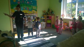 16 września, policjanci z Komisariatu Policji Bydgoszcz Śródmieście odwiedzili dzieci w przedszkolu „Pod Tęczowym Parasolem”, mieszczącym się przy ul. Markwarta.