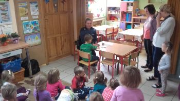 Policjanci zespołu do spraw nieletnich z Komisariatu Policji Bydgoszcz Błonie spotkali się z dziećmi z Przedszkola "Smerfuś" w Bydgoszczy, mieszczącego się przy ul. Kruszyńskiej 16 .