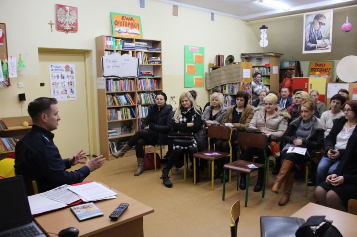 15 stycznia funkcjonariusze Wydziału Prewencji Komendy Miejskiej Policji w Toruniu spotkali się z rodzicami uczniów Szkoły Podstawowej w Łążynie I. Tematem była przemoc zarówno ze strony domowników jak i rówieśników oraz poprzez internet. Podczas spotkania policjanci chętnie odpowiadali na pytania zadawane przez aktywnie uczestniczących w dyskusji rodziców.