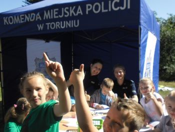 Policjanci z Komendy Miejskiej Policji w Toruniu odwiedzili Szkołę Podstawową w Złotorii. Podczas festynu z okazji Dnia Dziecka mundurowi opowiadali o podstawowych zasadach bezpieczeństwa.