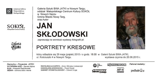 Galeria Sztuki BWA JATKI w Nowym Targu zaprasza na wystawę fotografii Jana Skłodowskiego pt. PORTRETY KRESOWE, której wernisaż odbędzie się 29 maja 2015 rokuo godz. 18.00. Wystawa czynna będzie do 20 czerwca br.