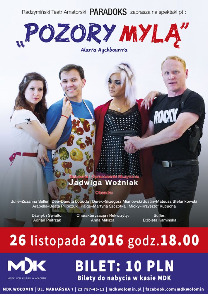 Miejski Dom Kultury w Wołominie zaprasza 26 listopada, o godz. 18:00 na spektakl "Pozory mylą" w wykonaniu teatru Paradoks.