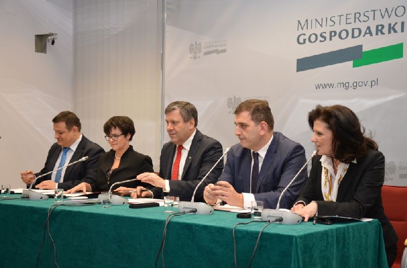 Na zdjęciu od lewej: wiceminister pracy i polityki społecznej Jacek Męcina, minister edukacji narodowej Joanna Kluzik-Rostkowska, wicepremier, minister gospodarki Janusz Piechociński, wiceminister skarbu państwa Rafał Baniak oraz wiceminister gospodarki Ilona Antoniszyn – Klik