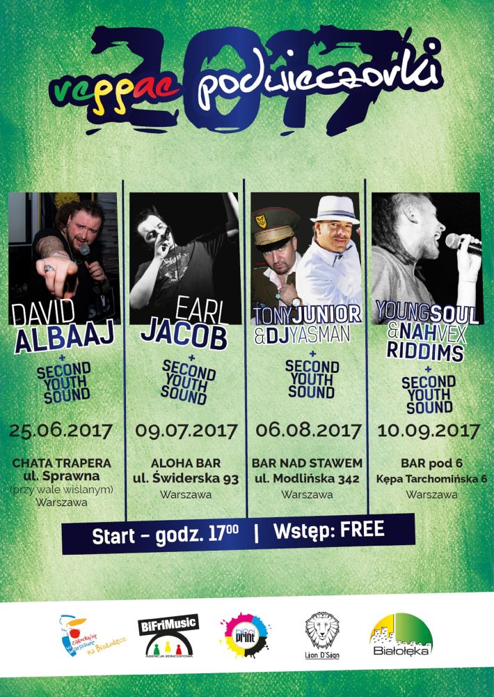 10 września, o godz. 17:00 zapraszamy na imprezy muzyczne z muzyką reggae. Wystąpią: Young Soul & Nahvex Riddims oraz Second Youth Sound. Wstęp wolny. Lokalizacja: Bar pod 6, ul. Kępa Tarchomińska 6.