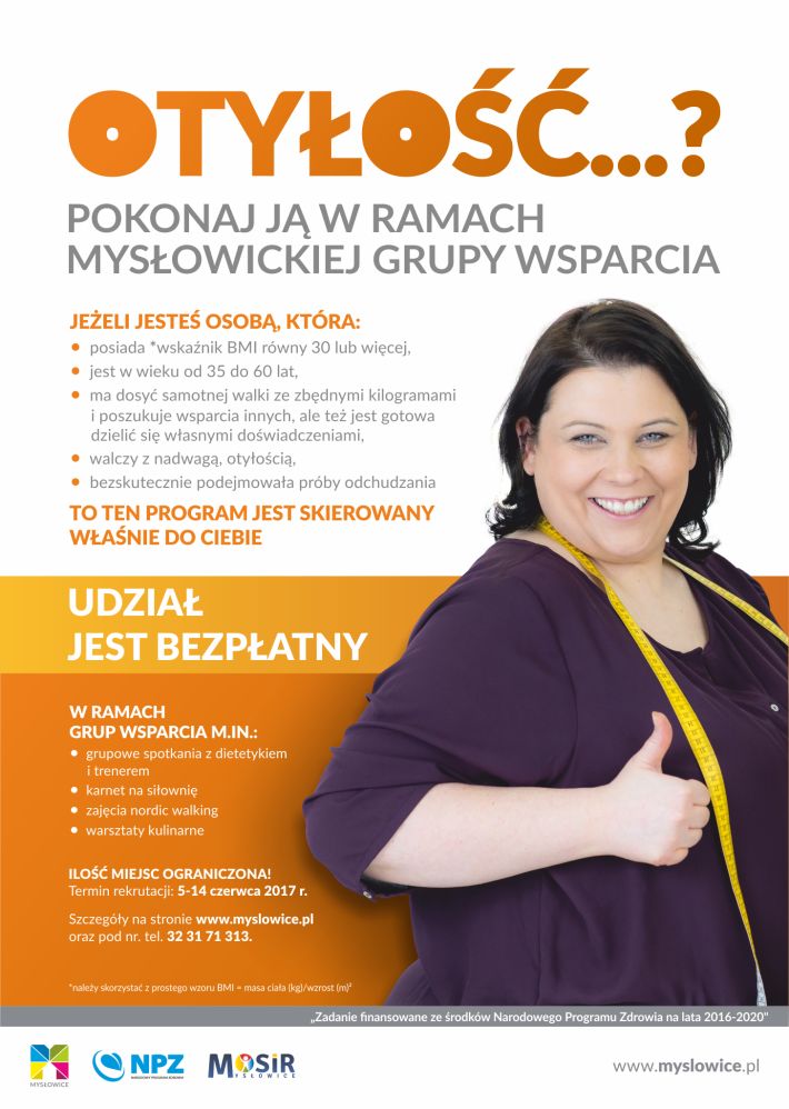 UM w Mysłowicach wygrał konkurs na dofinansowanie zadania, które ma na celu stworzenie grupy wsparcia dla osób z otyłością. Program oferuje m.in. konsultacje z dietetykiem, lekarzem, trenerem czy rehabilitantem, jak również szeroki wachlarz zajęć ruchowych.