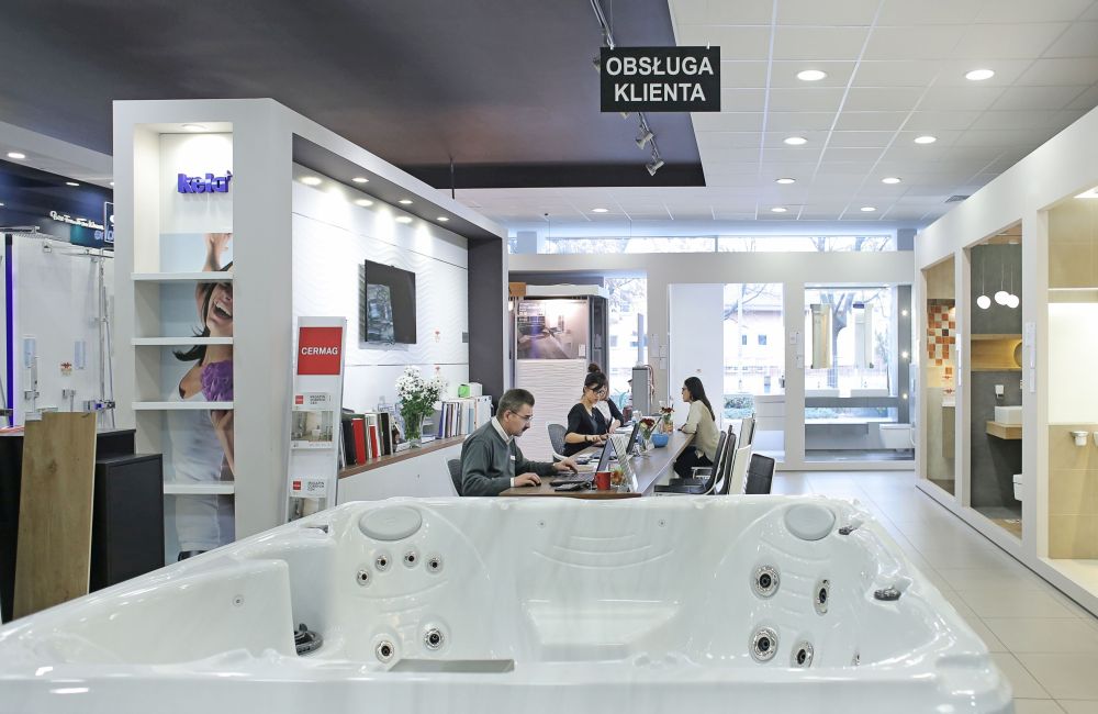 CERMAG Łódź jest drugim co do wielkości salonem łazienek CERMAG, oferującym płytki ceramiczne, armaturę, ceramikę sanitarną, materiały wykończeniowe oraz akcesoria do montażu. Bogata oferta sprzedażowa, profesjonalny zespół specjalistów oraz intensywna współpraca z architektami poparta 30-letnim doświadczeniem w branży pozwala spełniać oczekiwania klientów w zakresie estetyki i komfortu. Łódzki salon firmy CERMAG świadczy dodatkowo usługi projektowe i budowlane w zakresie aranżacji wnętrz i prac budowlano-wykończeniowych. W salonie znaleźć można bogaty wachlarz produktów znanych, światowych producentów takich jak Imola, Casalgrande Padana, Porcelanosa, Villeroy&Boch. W szerokiej ofercie nie brakuje także produktów stworzonych przez producentów z krajowej czołówki – Paradyż, Tubądzin, Nowa Gala, Koło. Wśród ekspozycji na uwagę zasługują: strefa Porcelanosy, Kaldewei oraz nowa strefa armaturowa. Nie dziwi zatem fakt, że łódzki salon CERMAG Łódź został wyróżniony w plebiscycie na „Salonu Roku 2016”. Szeroki asortyment, profesjonalna obsługa, a także podążanie za aktualnymi trendami pozwoliły na uzyskanie pozycji lidera w województwie łódzkim.