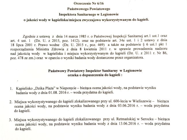 Mieszkańcy powiatu legionowskiego mogą bezpiecznie korzystać z wybranych kąpielisk w Nieporęcie, Wieliszewie i Serocku.