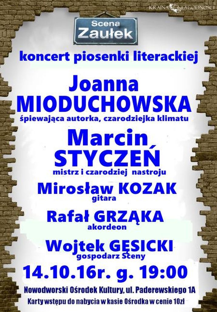 14 października, o godz. 19:00 w Nowodworskim Ośrodku Kultury odbędzie się kolejny Bardzo Kulturalny Wieczór ze Sceną Zaułek.