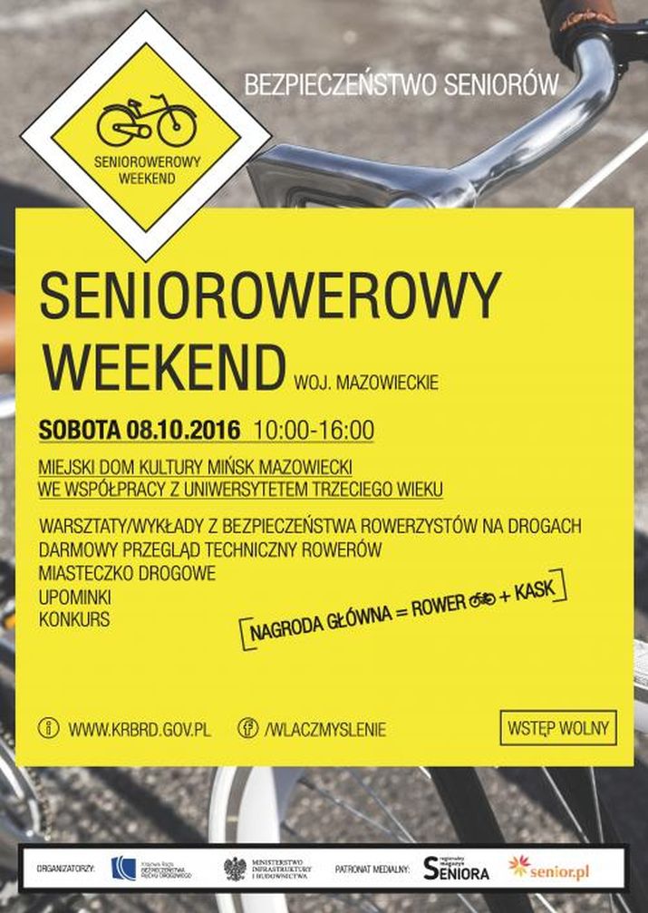 SenioRowerowy Weekend to nie tylko okazja do pogłębienia swojej wiedzy dotyczącej bezpieczeństwa na rowerze, to również szansa na wygranie nowoczesnego, wygodnego roweru i lekkiego kasku. 8 października, o godz. 10:00, w Miejskim Domu Kultury w Mińsku Mazowieckim, Krajowa Rada Bezpieczeństwa Ruchu Drogowego zaprosi wszystkich ochotników do udziału w quizie dotyczącym bezpieczeństwa rowerzystów. Zdobądź maksymalną liczbę punktów i... wygraj. Rozstrzygnięcie konkursu o godz. 15:30. (jkd)