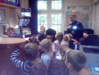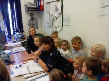Oczywiście spotkanie nie mogło się odbyć bez przypomnienia najmłodszym podstawowych zasad bezpieczeństwa, które zostały przedstawione w formie prezentacji multimedialnej. Po minach na twarzach dzieci można było stwierdzić, iż ucieszyła je wizyta w komisariacie, a praca policjanta zaciekawiła. (jkd)