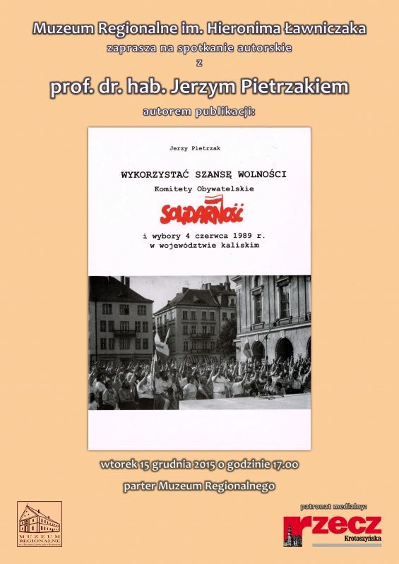 We wtorek 15 grudnia Muzeum Regionalne w Krotoszynie serdecznie zaprasza na spotkanie autorskie z prof. dr. hab. Jerzym Pietrzakiem, podczas którego były senator będzie promował swoją najnowszą publikację pt. „Wykorzystać szansę wolności. Komitety Obywatelskie „Solidarność” i wybory 4 czerwca 1989 r. w województwie kaliskim”. Spotkanie odbędzie się na parterze gmachu poklasztornego - informuje krotoszyński samorząd.