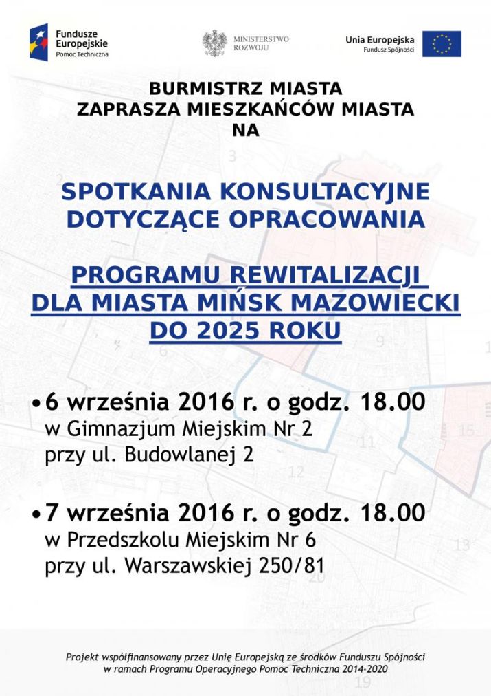 Burmistrz Mińska Mazowieckiego zaprasza mieszkańców na konsultacje dotyczące programu rewitalizacji miasta.