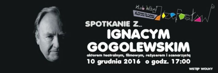 Tym razem w ramach cyklu "Spotkanie z..." zapraszamy 10 grudnia, o godz. 17:00 na spotkanie z Ignacym Gogolewskim - aktorem teatralnym, filmowym, reżyserem i scenarzystą.