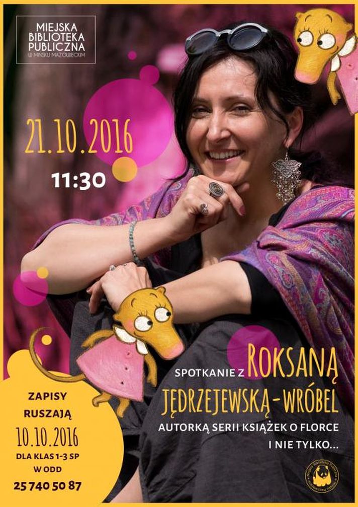 Kto z najmłodszych czytelników biblioteki nie zna przygód rezolutnej i wesołej Florki? Autorkę tej zabawnej serii książek Roksanę Jędrzejewską-Wróbel spotkacie w bibliotece 21 października, o godz. 11:30.