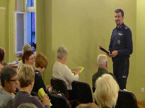 Na spotkanie do Żarskiego Domu Kultury przybyło ponad 40 seniorów. Zebrani wysłuchali wykładu na temat "Jak nie dać się oszukać”. Czynnie uczestniczyli w spotkaniu oraz wymieniali się swoimi doświadczeniami.