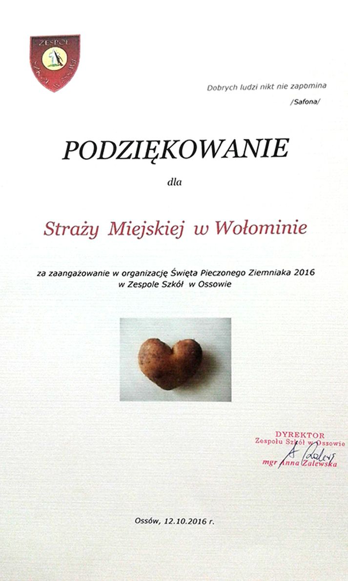 W dniu 12 października Straż Miejska w Wołominie, na zaproszenie dyrekcji Zespołu Szkół w Ossowie, wzięła udział w obchodach "Święta Pieczonego Ziemniaka".