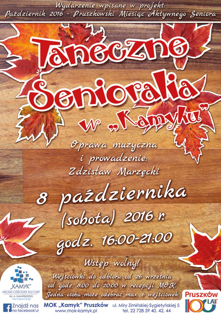 Miejski Ośrodek Kultury im. A. Kamińskiego w Pruszkowie zaprasza 8 października, w godz. 16:00-21:00 na zabawę otwartą dla seniorów "Taneczne Senioralia".