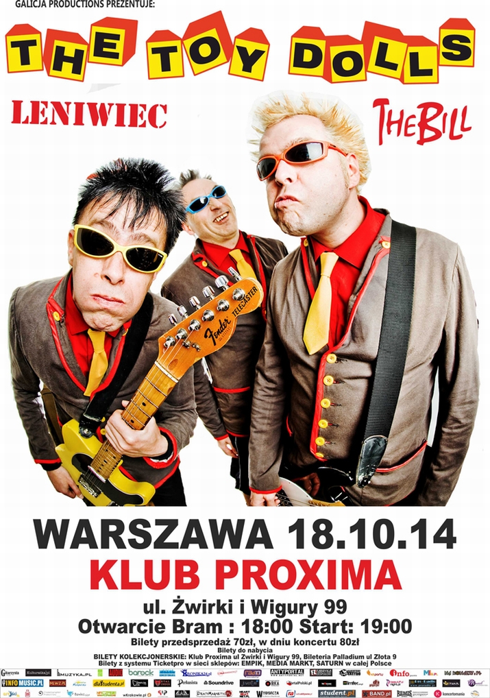 Po ogromnym sukcesie ubiegłorocznego koncertu w Krakowie Galicja Productions postanowiła zorganizować dwa kolejne występy brytyjskich punkowców z The Toy Dolls. Pierwszy z nich odbędzie się 17 października w Klubie Alibi we Wrocławiu, drugi natomiast dzień później w warszawskiej Proximie. Szczegóły poniżej.