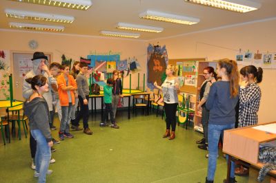 Na warsztatach teatralnych młodzież pracowała nad integracją swojej grupy, budowaniem zaufania i odpowiedzialnością za innych. Pociąg zaufania i inne ćwiczenia mające na celu skupienie się na partnerze scenicznym to zabawy, do których młodzi podeszli bardzo poważnie i z pełnym zaangażowaniem.