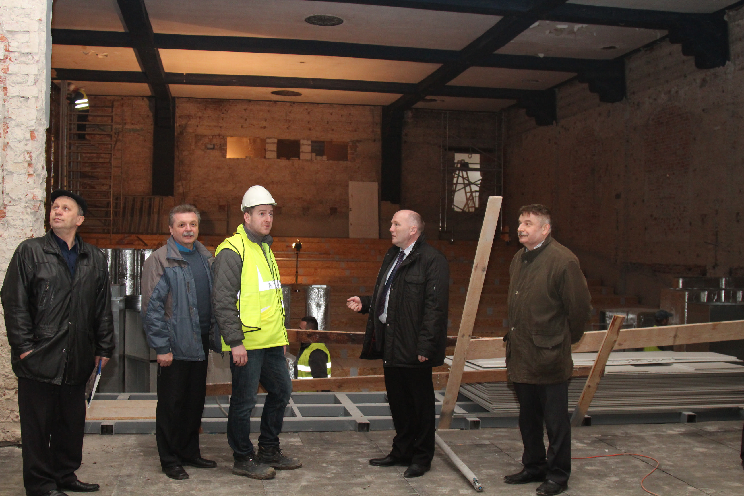 W naradzie roboczej na placu budowy Trzebnickiego Centrum Kultury i Sportu wzięli udział między innymi Burmistrz Marek Długozima, Zbigniew Zarzeczny Naczelnik Wydziału Techniczno-Inwestycyjnego, Ryszard Siwik z Wydziału TI, Jerzy Chomkowicz z Wydziału TI, Paweł Jędrzejewski z Wydziału TI, Maciej Jarosławski Kierownik Budowy z ramienia firmy AK Budownictwo i Konserwacja Sp. z o.o., Andrzej Maj Kierownik Robót AK Budownictwo i Konserwacja Sp. z o.o.