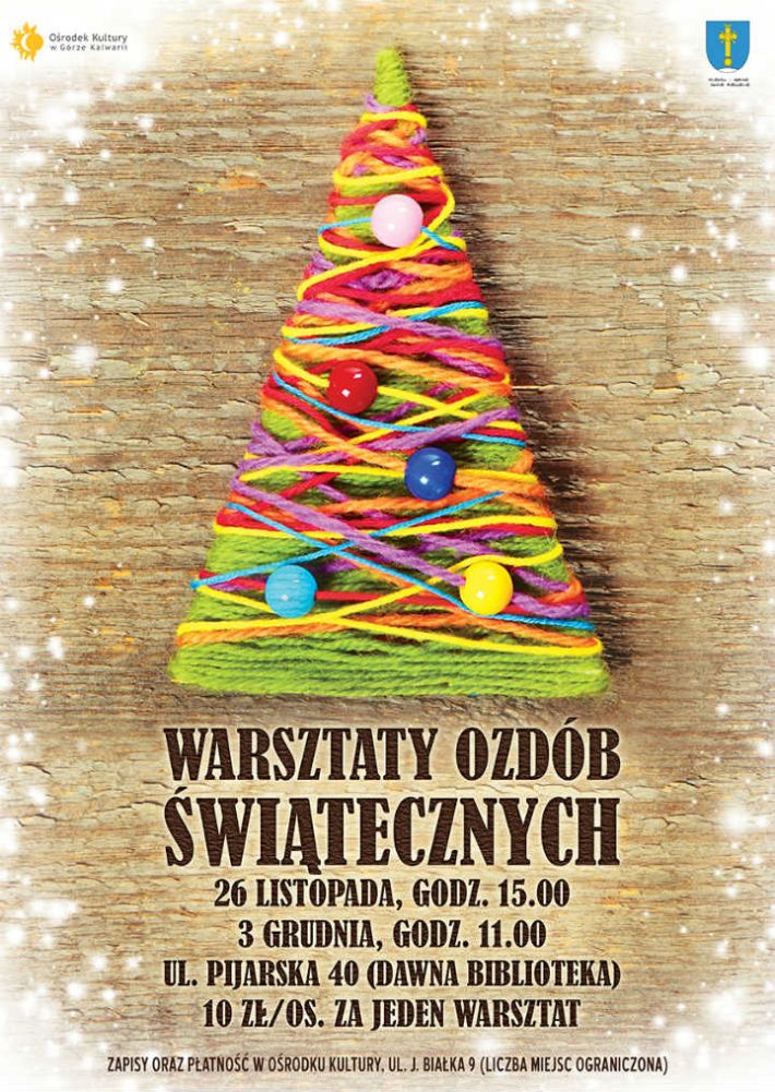 Ośrodek Kultury w Górze Kalwarii zaprasza 26 listopada, o godz. 15:00 na warsztaty ozdób świątecznych. Cena za zajęcia wynosi 10 zł.