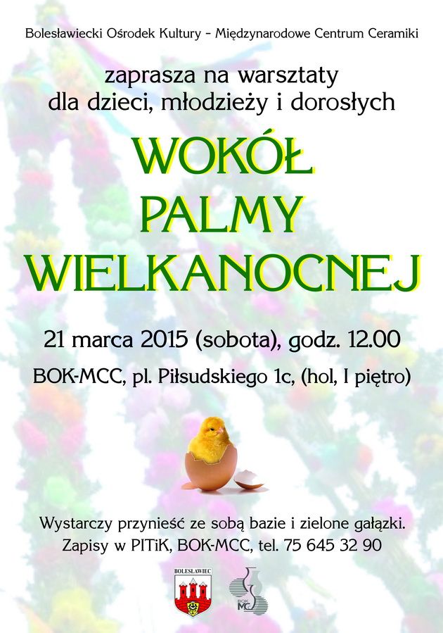 Zbliżają się Święta Wielkiej Nocy. Tydzień przed Niedzielą Palmową w sobotę, 21 marca o godz. 12.00 w holu BOK-MCC (I piętro) odbędą się warsztaty tworzenia tradycyjnej Palmy Wielkanocnej.