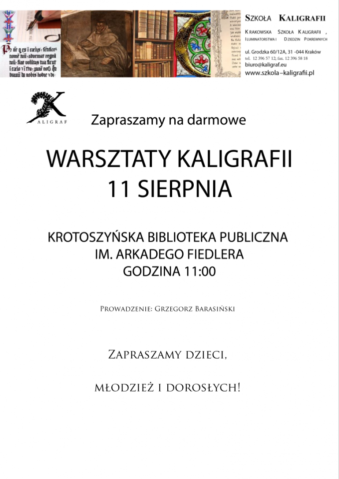 Krotoszyńska Biblioteka Publiczna im. Arkadego Fiedlera zaprasza na bezpłatne "Warsztaty Kaligrafii".