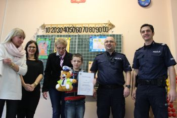 9-latek znalazł portfel z pieniędzmi i dokumentami. Nie zastanawiał się ani chwili co zrobić ze znaleziskiem. Dzięki jego uczciwości właściciel odzyskał kilkaset złotych. 21 grudnia komendant Komisariatu Policji Toruń Podgórz wręczył chłopcu dyplom i pamiątkową maskotkę.