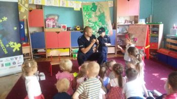 17 czerwca, st. asp. Sławomir Nowak z Komendy Miejskiej Policji w Bydgoszczy, odwiedził dzieci w przedszkolu "Skrzat", mieszczącego się przy ul. Wiosny Ludów.
