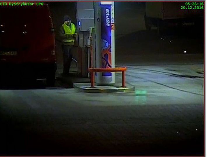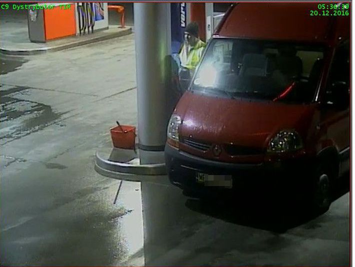 Z zebranych przez funkcjonariuszy informacji wynika, że podejrzewanym o dokonanie tej kradzieży jest mężczyzna, który o godz. 5:25 tankował na stacji olej napędowy do czerwonej furgonetki marki Renault. Po zatankowaniu niemal 1000 l paliwa odjechał, nie płacąc za nie. Ustalono, że w chwili dokonywania tego przestępstwa pojazd miał zamontowane skradzione tablice rejestracyjne.