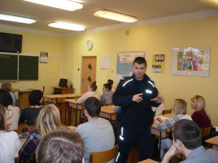 Kolejne spotkanie funkcjonariusz odbył z uczniami I klas technikum, podczas którego rozmawiano na temat odpowiedzialności prawnej osób nieletnich oraz odpowiedzialności karnej osób po osiągnięciu 17 roku życia. Uczniowie dowiedzieli się kim jest osoba nieletnia, na czym polega odpowiedzialność za czyny karalne oraz jakie są objawy szeroko rozumianej demoralizacji. Podczas spotkania wyjaśniono także pojęcie czynu zabronionego, przedstawiono formy popełnienia przestępstwa oraz omówiono rodzaje kar w polskim prawie karnym. Ponadto uczniowie rozmawiali o rodzajach przestępstw i co należy zrobić, aby nie stać się ofiarą przestępstwa.