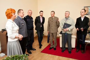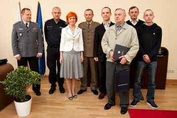 Tak jednoznaczny przejaw zaangażowania pozostaje na długo w pamięci, jako świadectwo wyjątkowej odpowiedzialności. Bardzo dziękuję za śmiałą postawę, która może być wzorem do naśladowania - czytała w liście wicewojewoda Elżbieta Rusielewicz, dodając - życzę panom pogody ducha i spełnienia wielu zamierzeń oraz dużo satysfakcji, której źródłem jest świadomość osobistego udziału w ochronie poczucia bezpieczeństwa. (jkd)