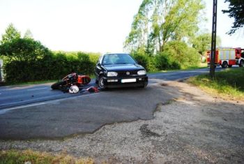 Z dotychczasowych ustaleń wynika, że kierująca samochodem marki VW Golf, w trakcie wykonywania manewru skrętu z drogi głównej w lewo, zderzyła się z jadącym z naprzeciwka motocyklistą. W wyniku zdarzenia kierujący motorem doznał obrażeń ciała i został przewieziony do szpitala. (jkd)