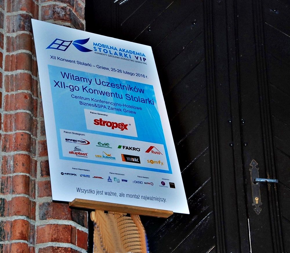 XIII Konwent Stolarki odbył się na dziedzińcu Zamku w Gniewie. Spotkanie rozpoczęło się od prelekcji kilkunastu ekspertów, którzy poruszyli w swoich przemowach zagadnienia związane z prawem, automatyką, montażem, systemami rolet, okuciami, szybami, dźwigami i przyssawkami, a także antywłamaniowością oraz marketingiem. Na szczególną uwagę zasługują wystąpienia, które cieszyły się ogromnym zainteresowaniem. Marcina Szewczuk z firmy Aluplast przedstawił nowe spojrzenie na stolarkę energooszczędną opierając się na podstawie aktualnych trendów PVC, a także opowiedział o europejskich systemach PVC i tamtejszych wymaganiach rynku. Natomiast prezentację dotyczącą systemów roletowych wygłosił Zbigniew Dyrka, który reprezentował na Konwencie firmę Exte. O przykładach zastosowania automatyki w oknach, drzwiach i bramach garażowych oraz roletach opowiadał przedstawiciel firmy SOMFY, Daniel Kwapich. Ponadto, ciekawą propozycję dotyczącą recyklingu okien i drzwi, co stanowi niszę w branży stolarki, przekazał Daniel Szeremiota z firmy DEKOS.
