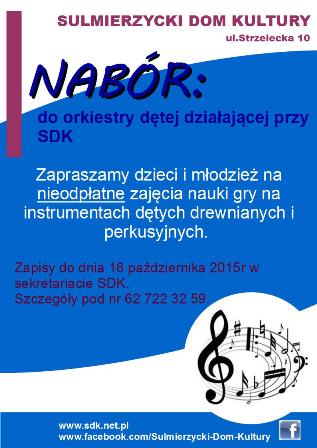Sulmierzycki Dom Kultury (powiat Krotoszyn) ogłasza nabór chętnych do orkiestry działającej przy SDK.