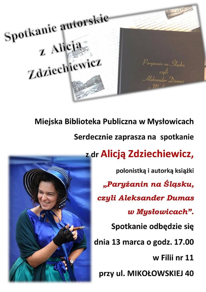 Miejska Biblioteka Publiczna w Mysłowicach zaprasza 13 marca, o godz. 17:00 na spotkanie z polonistką i autorką książki Alicją Zdziechiewicz.