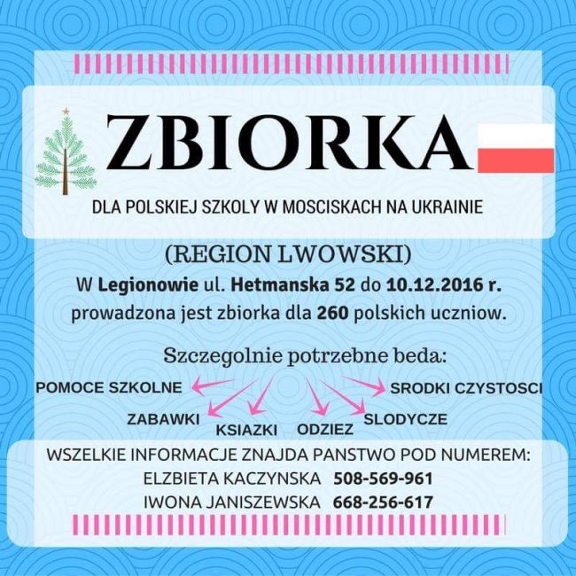 Zbiórka na rzecz uczniów polskiej szkoły w Mosciskach