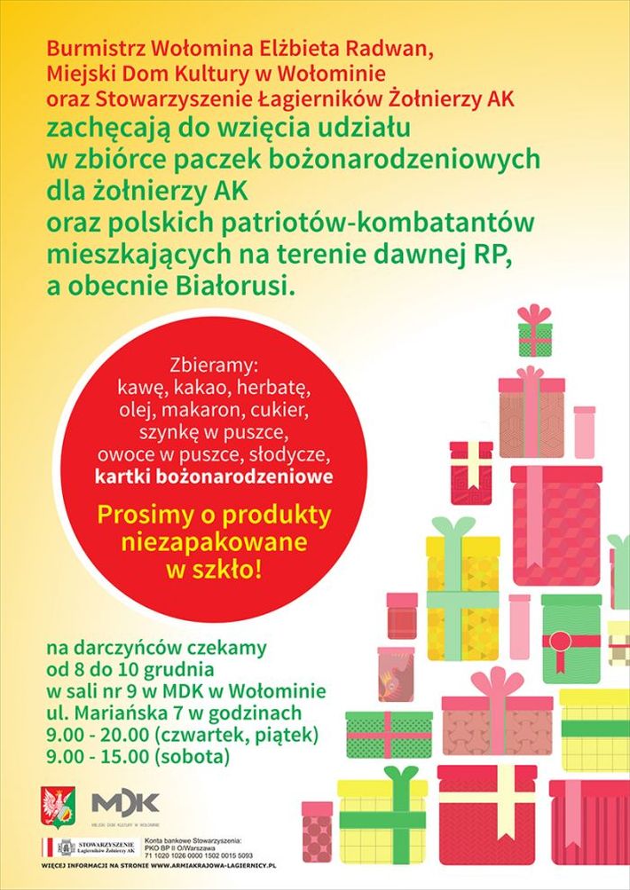 Zbiórka paczek bożonarodzeniowych dla żołnierzy AK i polskich patriotów-kombatantów mieszkających na Białorusi