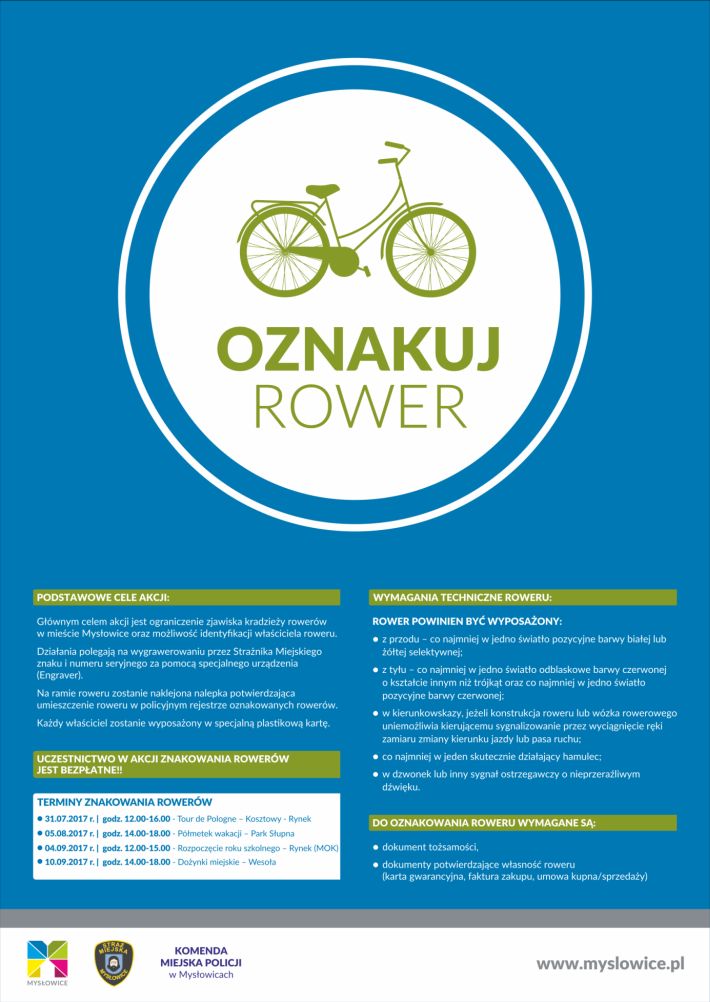 Do akcji mogą przystąpić pełnoletni mieszkańcy Mysłowic, posiadający dokument tożsamości oraz dowód zakupu lub kartę gwarancyjną roweru, a znakowany rower musi mieć obowiązkowe wyposażenie.